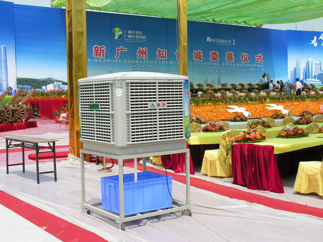 在炎(yán)熱的夏天,在市(shì)區街逛(guàng)街(jiē)的市民再也不用擔心烈日(rì)下酷暑難熬了(le)。移動式(shì)冷風機科葉環保空調降溫(wēn)亮(liàng)相步行街,為(wéi)過往(wǎng)路人帶來絲絲涼爽。昨日,在步行街上發現,整條街共擺放了5台科(kē)葉降溫,冷站吹出的徐(xú)徐涼風,吸引了不少路人聚集在周圍乘涼不肯離去。據介紹,環保空調,又稱蒸發冷風機,是一種集降溫、換氣、防塵、除味於一(yī)身的蒸發式(shì)降溫(wēn)換氣機組。環保空調除了可以讓企業車間(jiān)、公共場所、商業娛樂場合帶來新(xīn)鮮(xiān)空氣和降低溫度之外,還有一(yī)個重要特點----節能、環保!它是一款全新無壓縮機、無冷媒、無銅管的環保產品,還有明顯的降塵(chén)清新空氣、提高人體舒適度的(de)作用,讓行走在街上的路人清涼舒適。